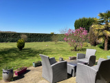 Maison individuelle de 125 m² habitables sur un terrain de 950 m². Entrée, séjour exposé Est/Ouest de 41 m² avec une cheminée à foyer fermé, cuisine indépendante de 12 m², une chambre, une salle de douche, toilettes. A l'étage, sur une dalle béton, un palier distribue trois chambres, une salle de bains, toilettes.