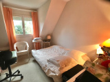 Très proche du centre-ville, maison de 122 m² habitables (147 m² au sol) sur un terrain de 440 m² : entrée, double séjour avec cheminée, salle à manger, cuisine, toilettes, cellier, cave. A l'étage : trois chambres dont une avec une salle d'eau, un bureau, une salle de bains, toilettes. Combles aménagés (2 pièces). Chauffage électrique, double vitrage PVC, volets roulants. Séjour orienté au Sud. Terrain clos, au calme. A pied des commodités : commerces, écoles, bus pour les transports en commun et le lycée. Possibilité de rentrer deux voitures dans la propriété.