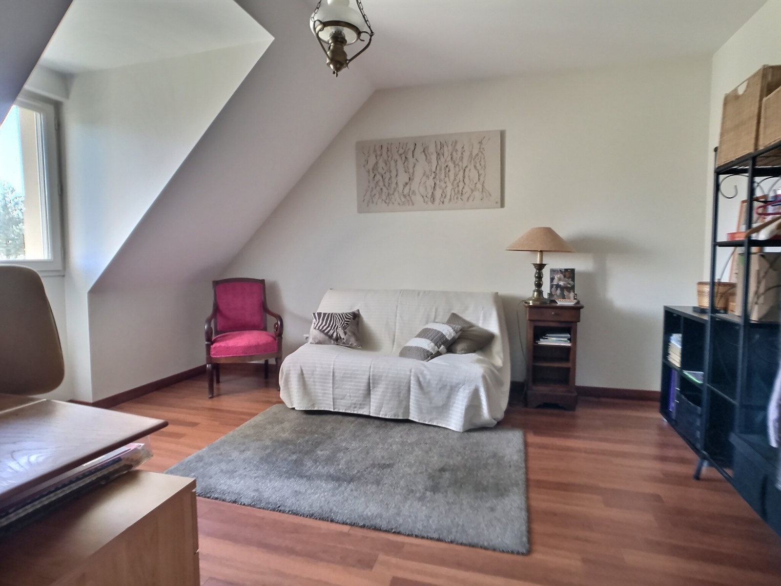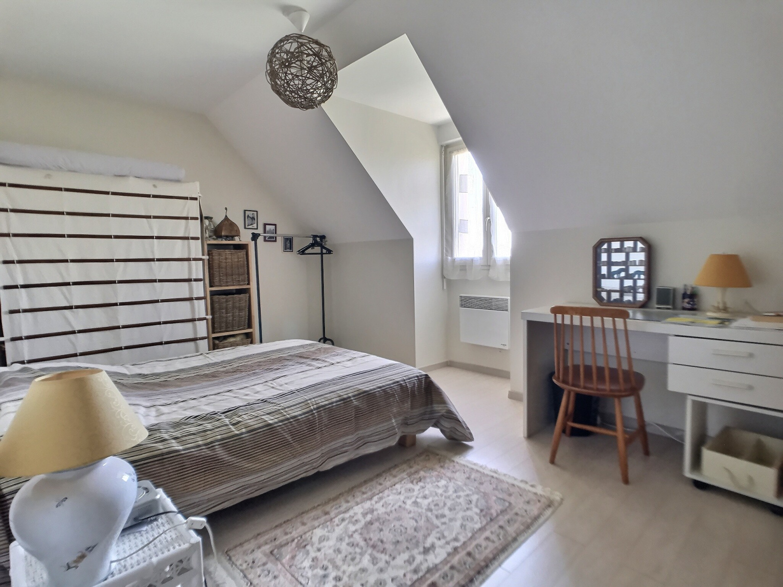 A l'étage, sur dalle béton, le palier dessert une salle de bains, des toilettes et trois chambres dont une de 30 m² qui autorise bien des aménagements (création de deux chambres, grande chambre parentale, salle de jeux,...).
