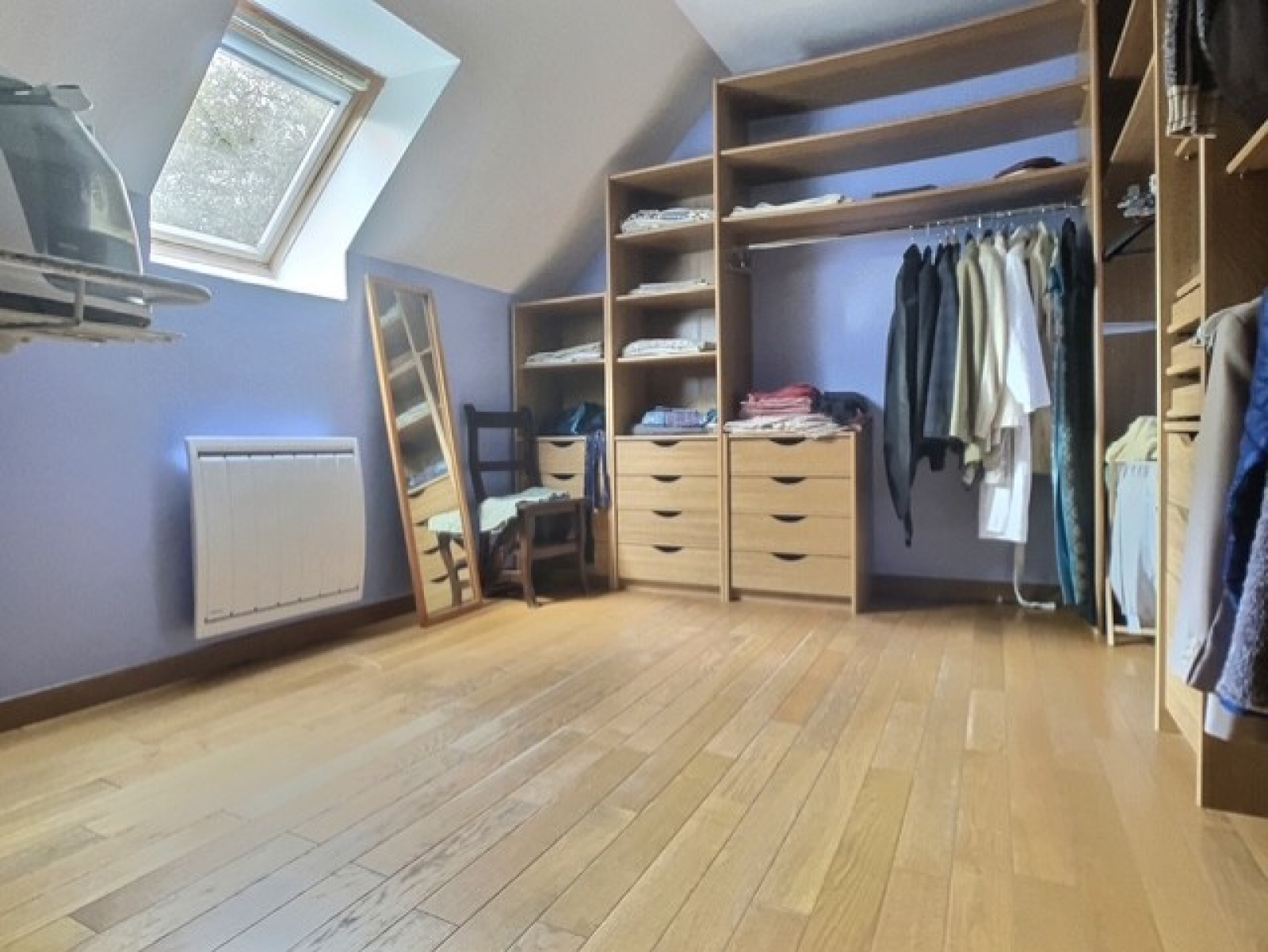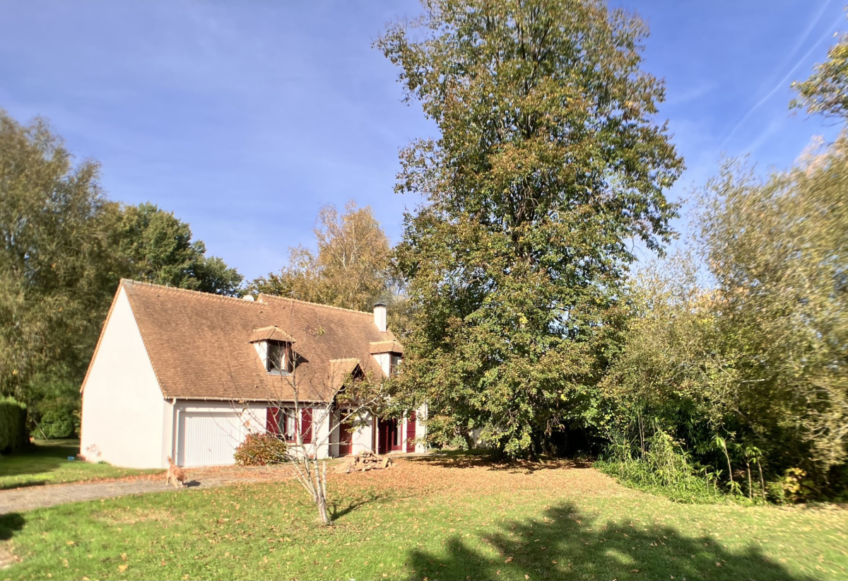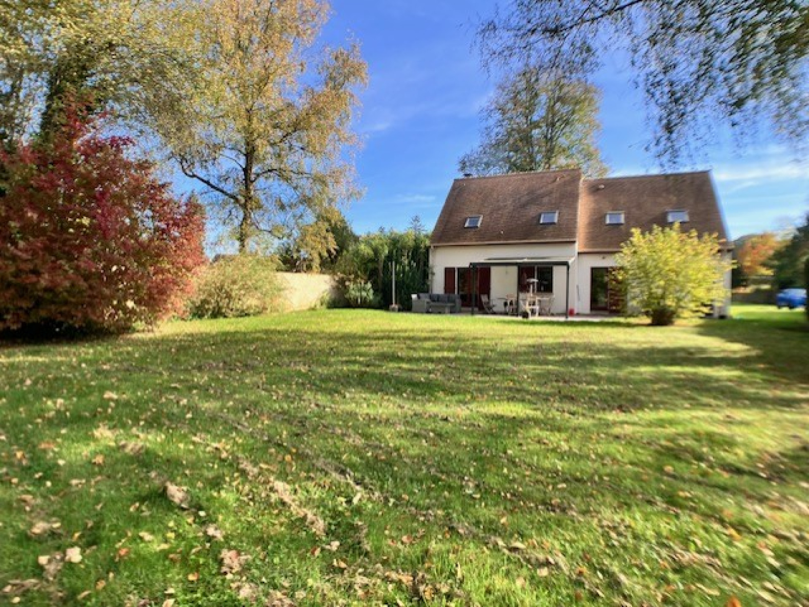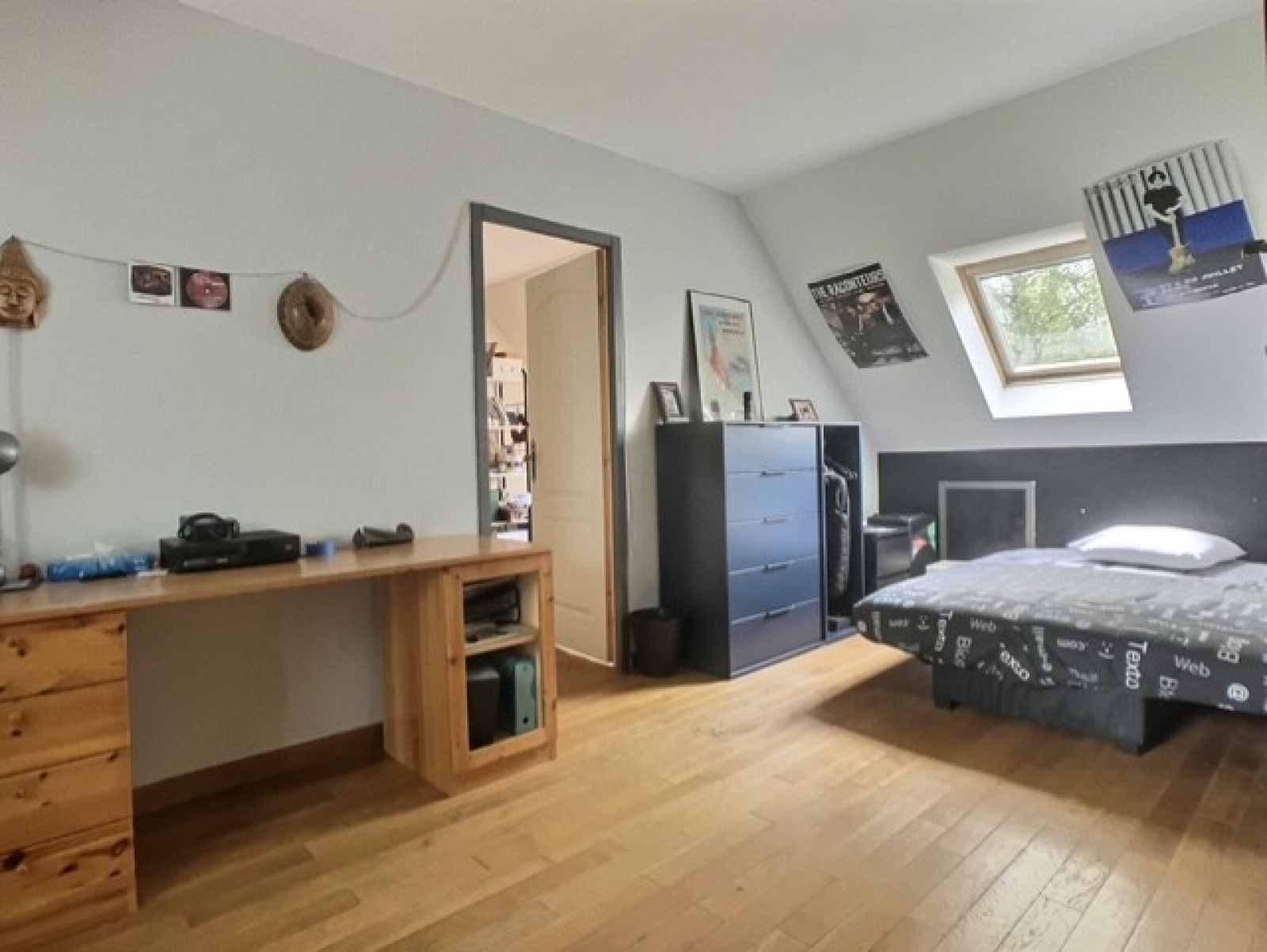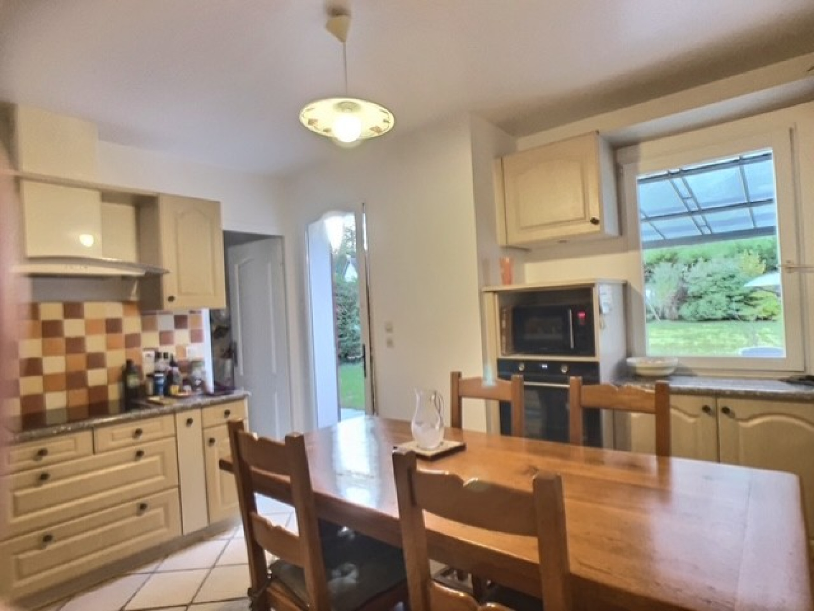 Sur un terrain plat de 2 000 m², sans vis-à-vis, maison individuelle de 140 m² habitables ainsi distribuée : hall d'entrée, salon/salle à manger avec cheminée, cuisine séparée (que l'on peut ouvrir), arrière-cuisine, toilettes et grande chambre. A l'étage, sur dalle béton, le palier dessert 3 chambres, une salle de bains et douche, toilettes et un bureau. Grande terrasse carrelée et couverte par un auvent. Garage attenant. Chauffage électrique. Maison en bon état général, prête à accueillir une famille dans un environnement de qualité, à deux pas de la forêt.