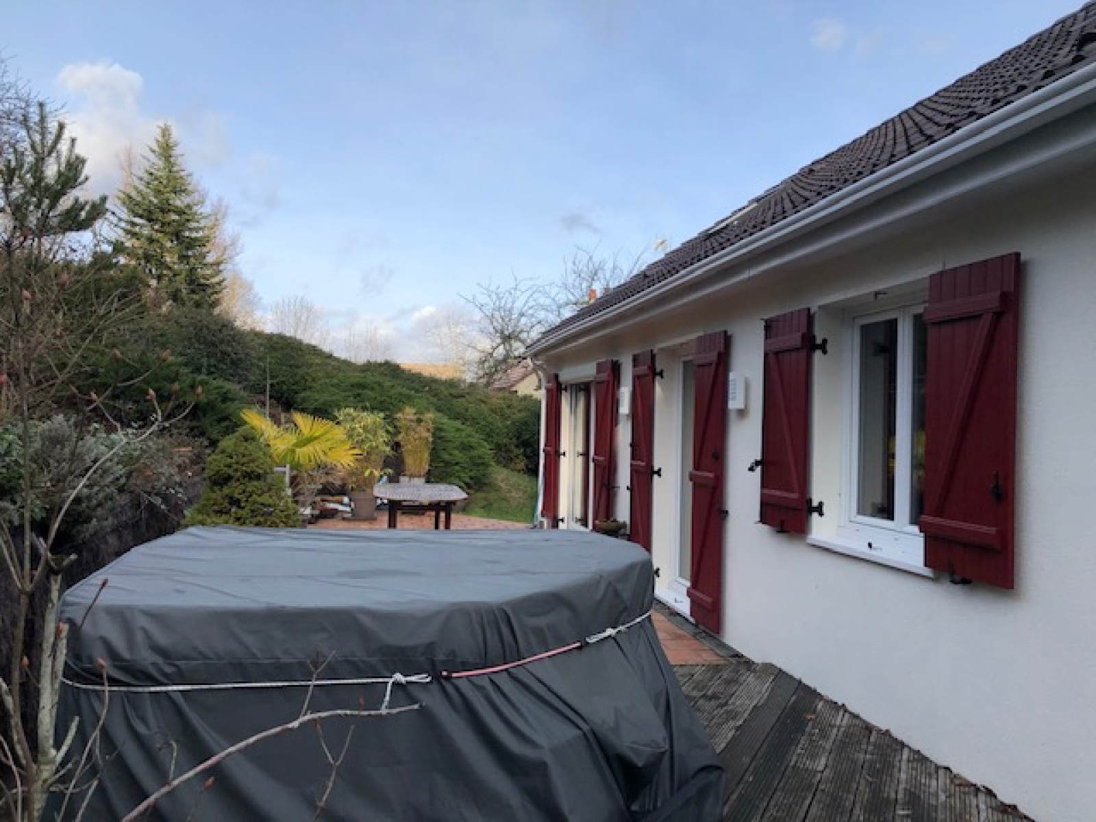 Au grand calme, édifiée sur un terrain de 960 m² sans vis à vis, cette maison rénovée avec goût se compose d'une entrée avec placards, une cuisine moderne et équipée ouverte sur une pièce de vie lumineuse avec accès direct à la terrasse et un spa, trois chambres, salle de bains, toilettes. A l'étage, deux grandes chambres, salle de douche, toilettes. Sous-sol total (buanderie,cave, garage). A voir absolument !