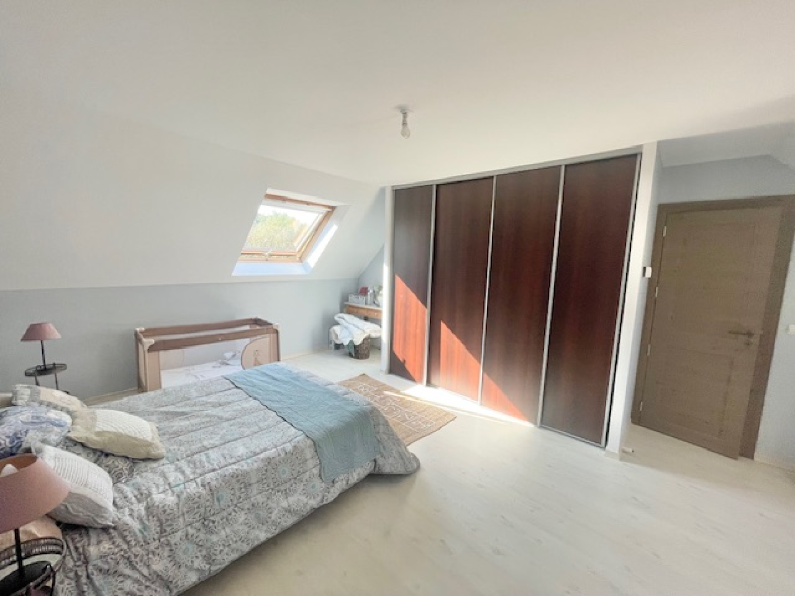 Proche de la nature, cette maison contemporaine de 235 m² habitables est édifiée sur un terrain de 1605 m² plat et piscinable. Elle propose de plain-pied : une belle entrée, une vaste et lumineuse pièce de vie avec un accès direct sur une terrasse au SUD, une cuisine indépendante équipée, un bureau, un toilette, une suite parentale avec salle de douche et toilette, une buanderie. A l'étage, un palier dessert trois belles chambres, une salle de bains avec douche, un toilette et un dressing. Un appartement de 45 m² attenant à la maison situé au dessus du double garage avec une entrée indépendante, comprend une pièce de vie avec cuisine ouverte équipée, un toilette, une chambre avec salle de douche. Idéal pour une activité libérale ou une location.