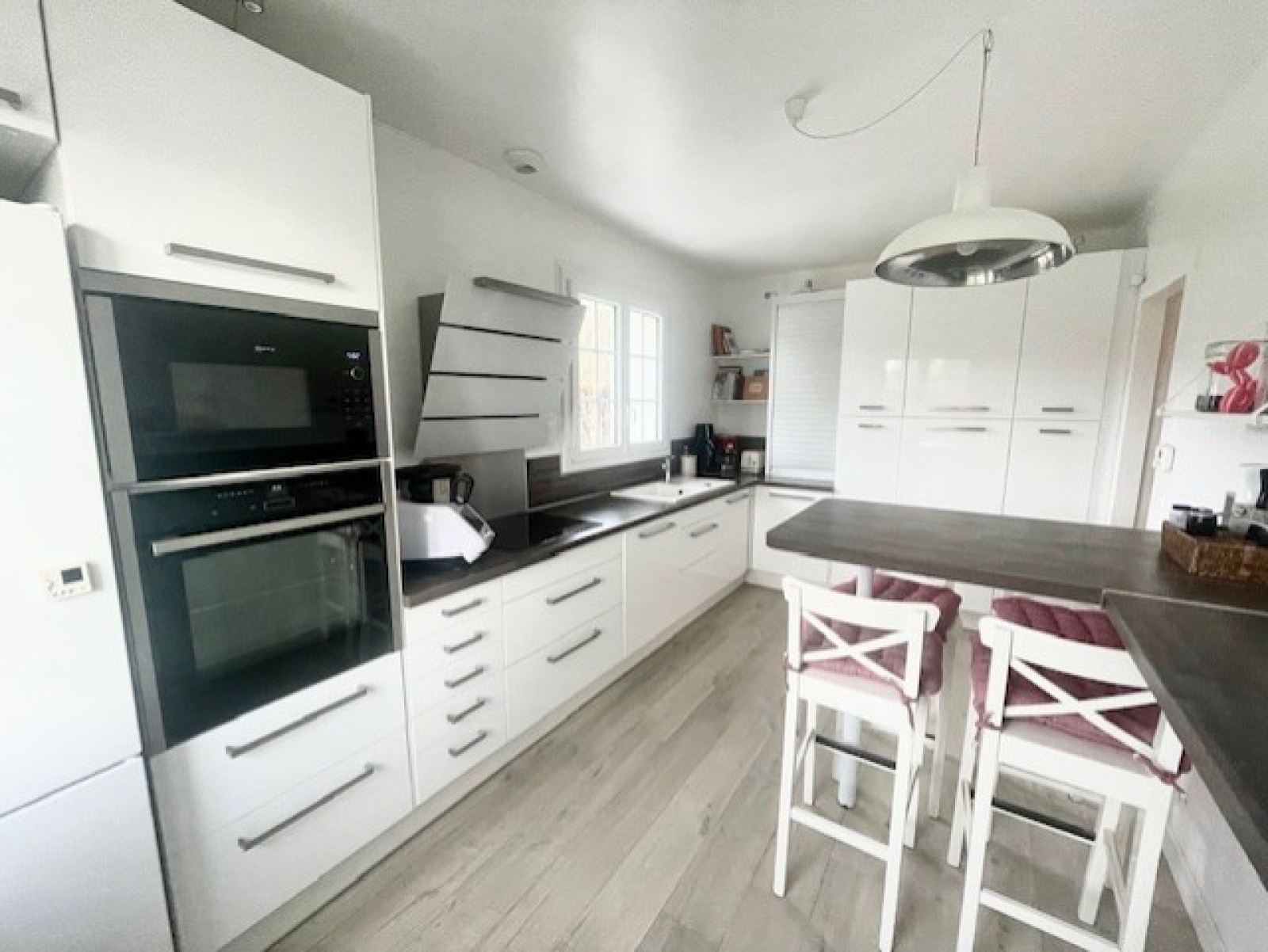 Située dans un environnement calme et verdoyant, à proximité de la nature, cette magnifique maison de 165 m² habitable avec sous-sol total offre de très beaux volumes et des prestations intérieures de qualité. Terrain de 1510 m² arboré avec deux terrasses. Au rez-de-chaussée, l'entrée dessert une belle pièce de vie lumineuse avec cheminée-insert, un espace repas avec un accès direct à une terrasse sans vis-à-vis, une cuisine contemporaine, un toilette indépendant, une chambre avec salle de bains, un espace bureau. A l'étage, trois grandes chambres, un bureau, un toilette, une magnifique salle de douche à l'italienne. Aucuns travaux à prévoir ! Isolation complète par l'extérieur, fenêtres et porte d'entrée récentes, portail et porte de garage motorisés. Vie de plain pied possible et maison idéale pour une famille.