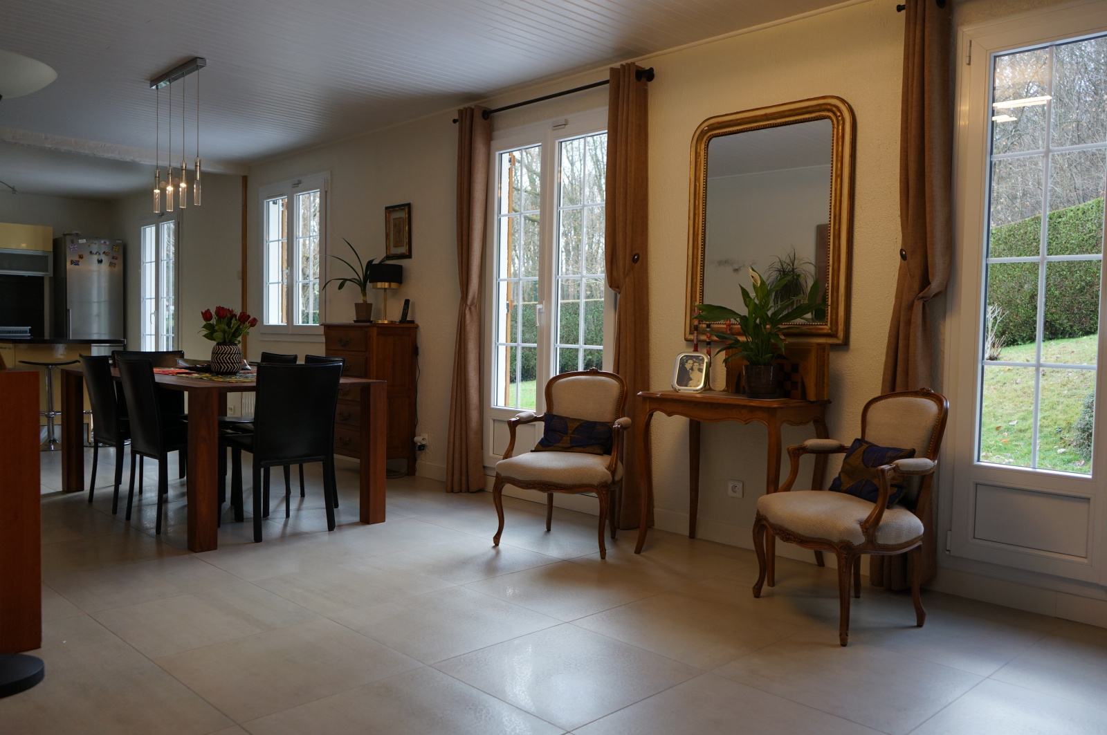 Au grand calme, sur un terrain de 1138 m2 sans vis-à- vis, cette maison individuelle familliale de 145 m2 environ entièrement rénovée dans un style contemporain, édifiée sur un sous-sol total, propose une entrée avec placards, une belle pièce de vie lumineuse avec un accès direct sur la terrasse, cheminée insert, une cuisine équipée ouverte sur la salle à manger, une chambre avec placards, une salle de douche, un toilette indépendant. A l'étage, un salon mezzanine, trois belles chambres, une salle de bains, un toilette.