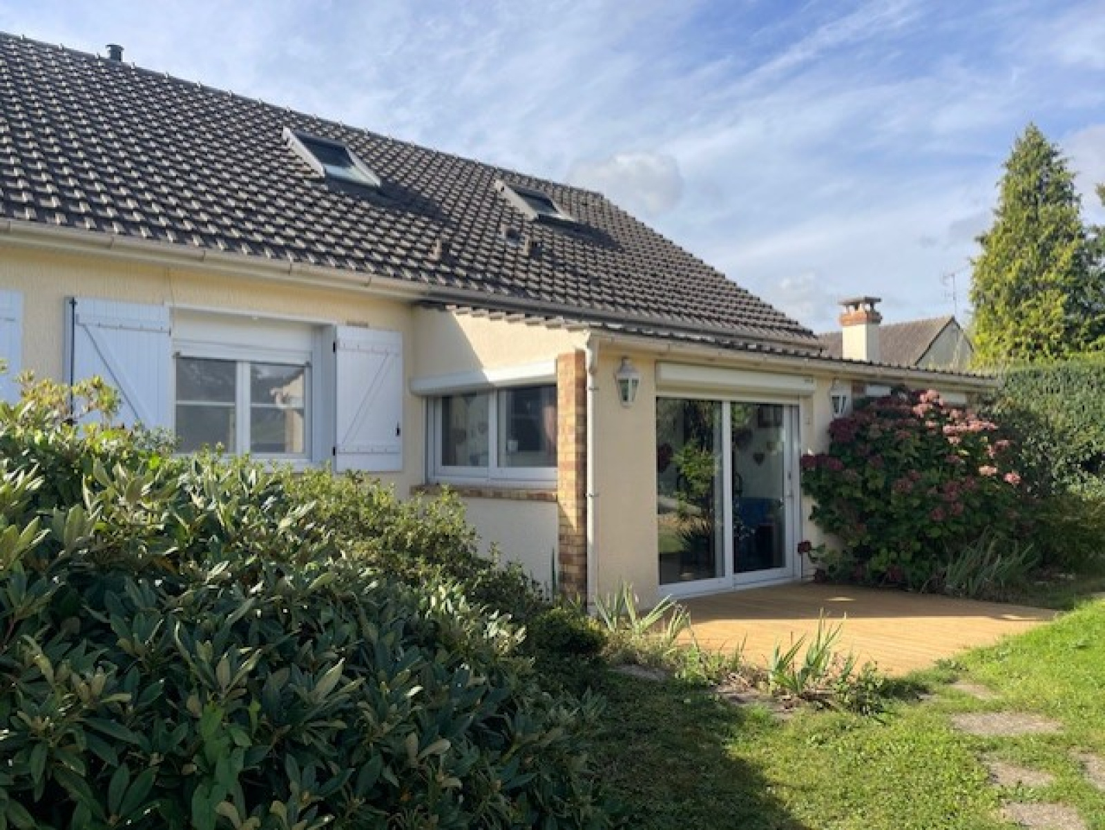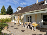 Idéalement située dans un quartier calme du village, proche de toutes commodités et de la nature, cette maison de construction traditionnelle propose une vie de plain-pied : vaste entrée avec placards, pièce de vie lumineuse de 65 m² avec cheminée insert et poêle à granulés, cuisine équipée avec un espace repas, buanderie, cellier, deux chambres, salle de bains et douche, toilettes. A l'étage : mezzanine (espace bureau), deux belles chambres avec chauffage réversible, possibilité d'aménager une salle de douche (arrivée d'eau et évacuations existantes), toilettes. Belle terrasse plein sud avec un accès sur une piscine chauffée couverte, entièrement découvrable l'été, avec pompe à chaleur et filtre à sable. Jardin paysager et facile d'entretien. Cette maison est édifiée sur un sous-sol total aménagé avec une chambre et salle de douche.Terrain de plus de 1000 m².