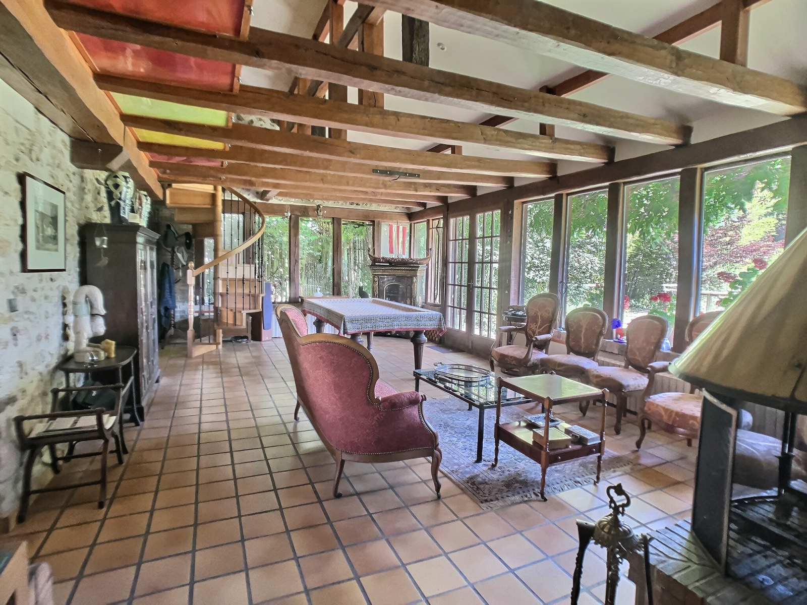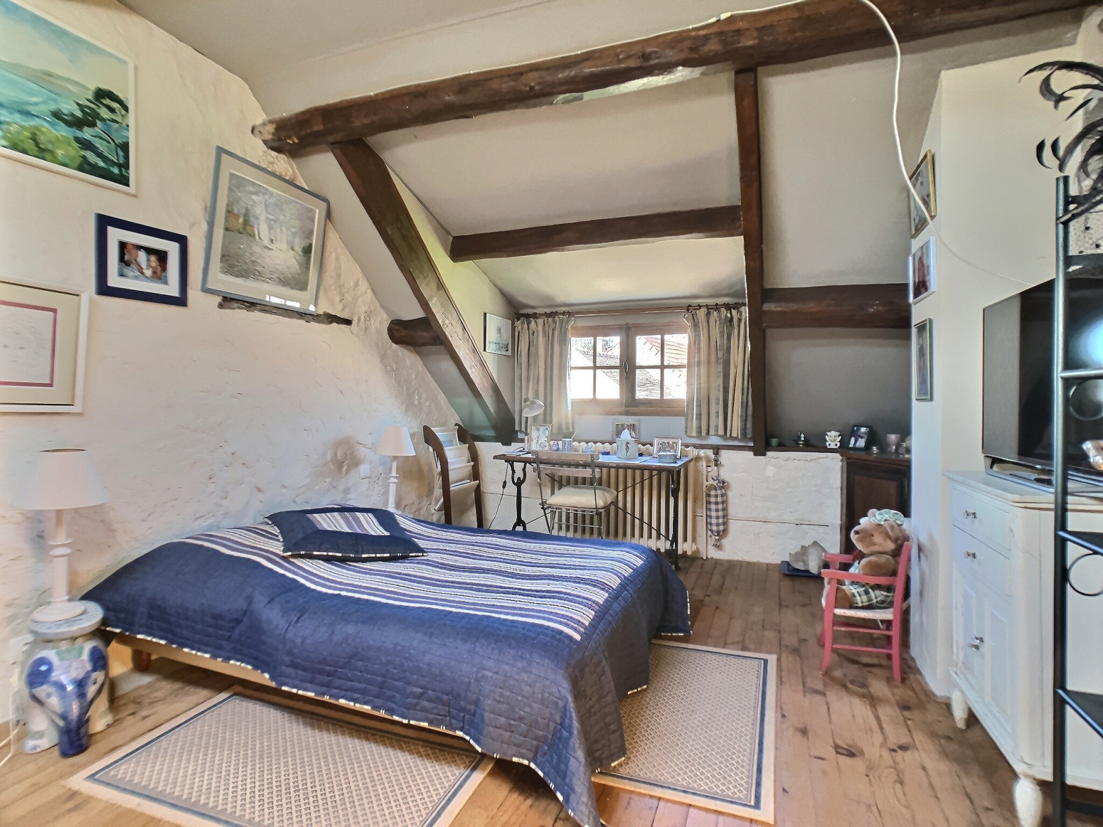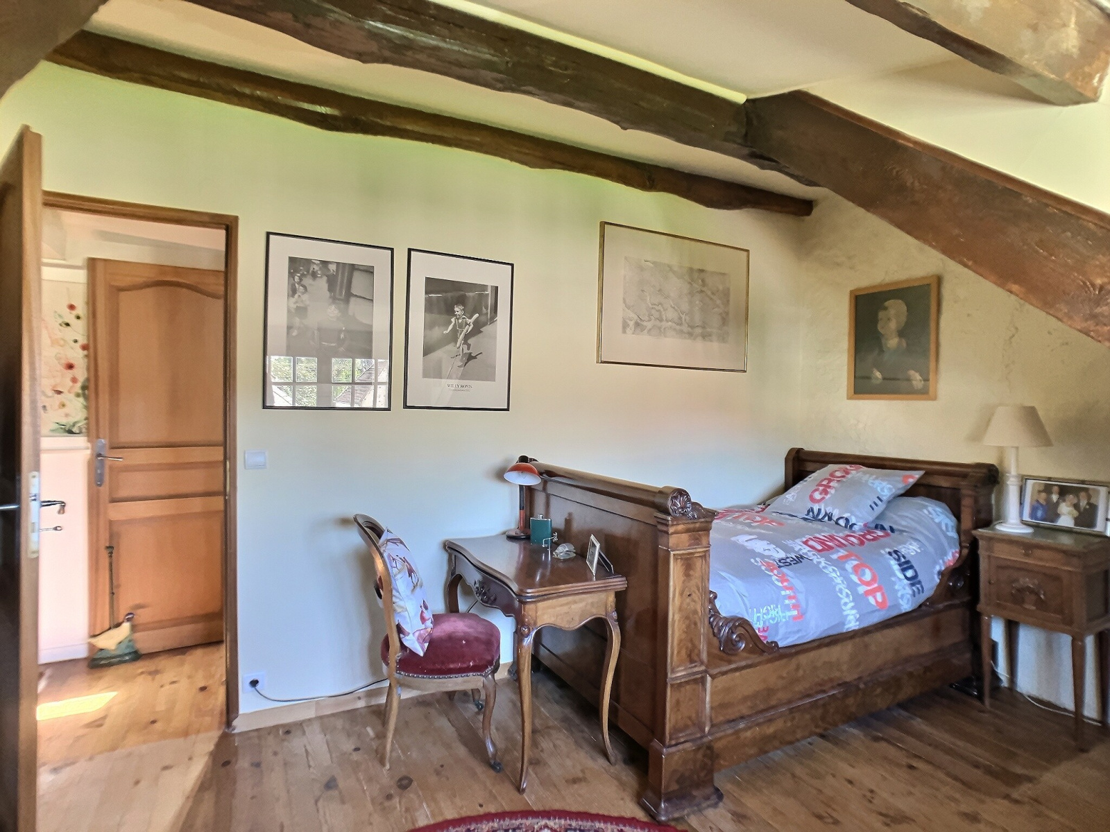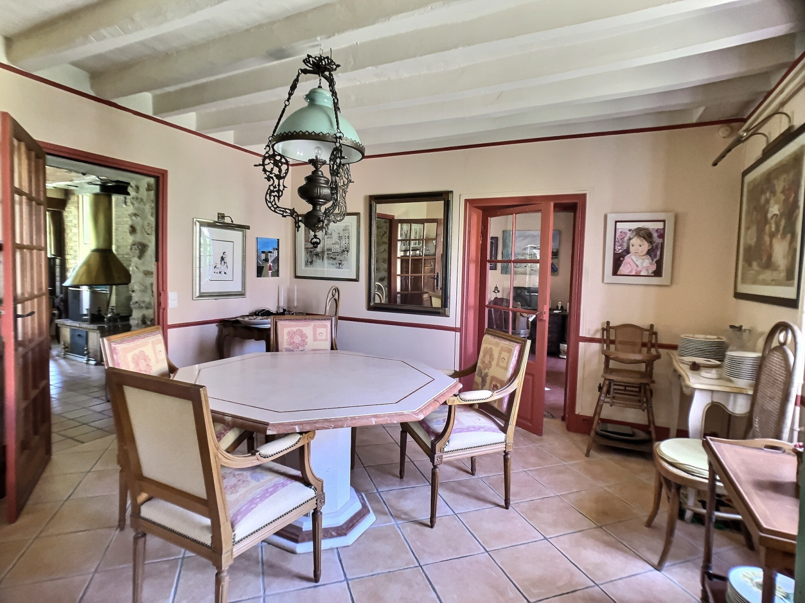Sur un terrain de près de 1800 m², belle longère d'environ 160 m² habitables. Au rez-de chaussée : beau séjour cathédrale avec cheminée, donnant sur terrasse et jardin, salle à manger, cuisine indépendante, un bureau avec cheminée et une chambre avec salle d'eau. L'étage offre trois grandes chambres et une salle de bains avec douche. Une dépendance est aménageable. Garage. Cave à vins. Le terrain, à l'abri des regard est magnifique : plat, clos et piscinable.