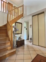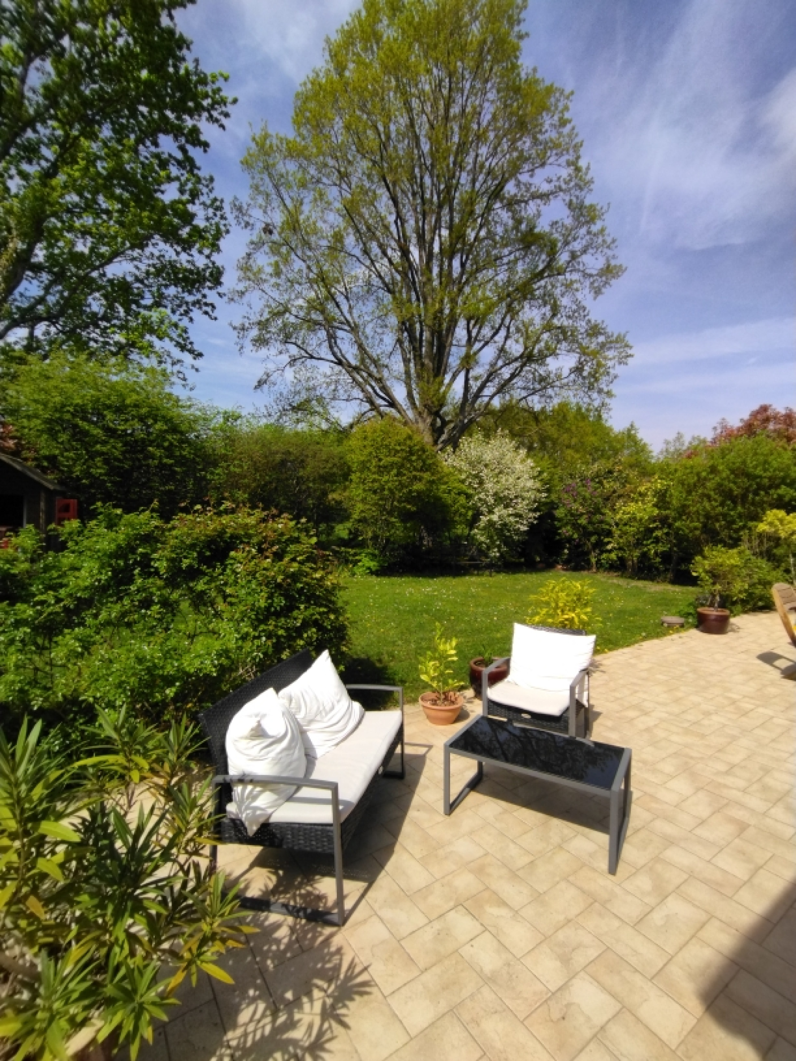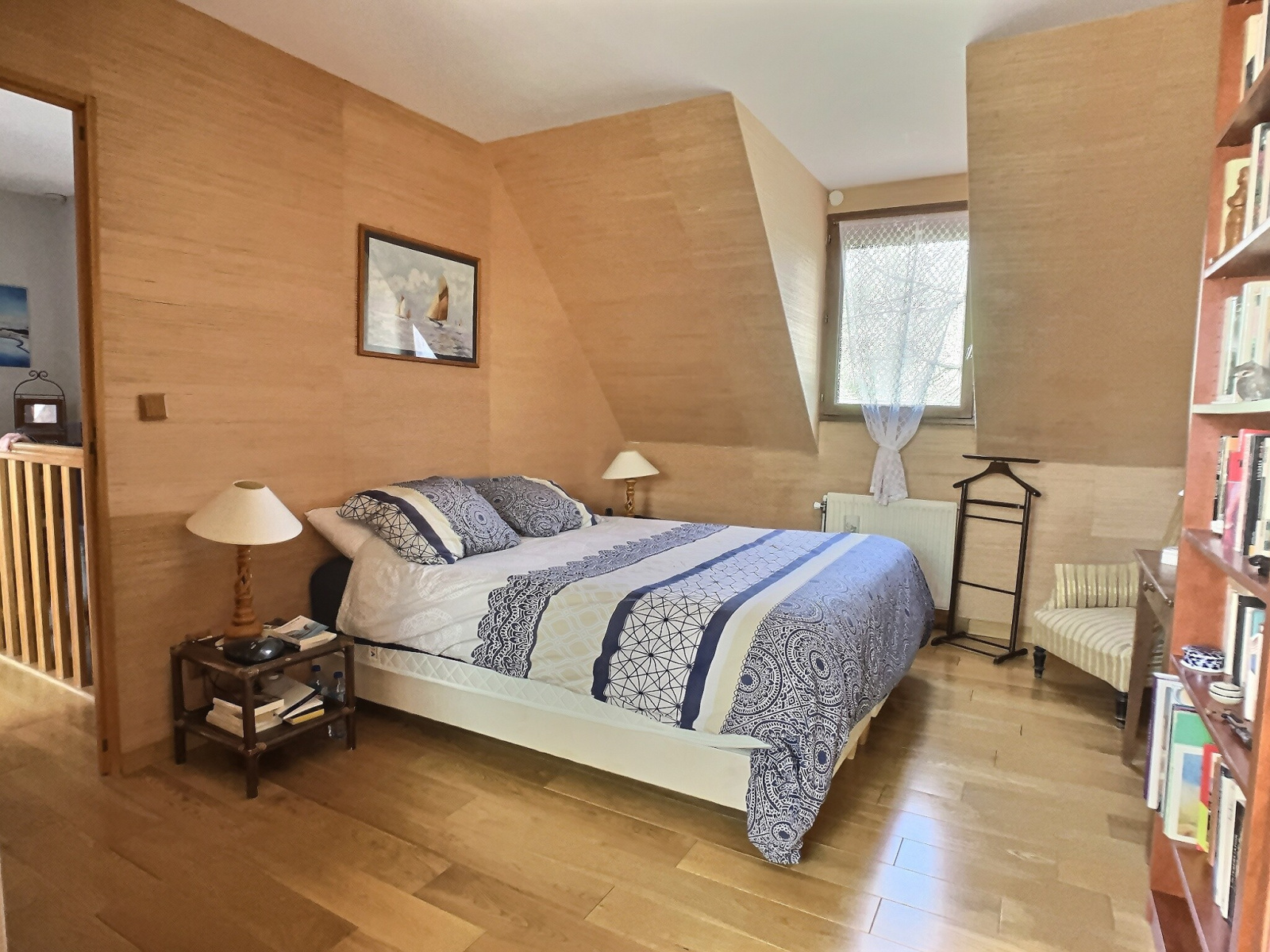 A pied de la forêt et du village avec commerces et écoles, cette maison individuelle de 142 m² environ, sur un terrain de 650 m² est ainsi composée : hall d'entrée, séjour à la double exposition avec cheminée, cuisine équipée séparée (pouvant être ouverte), arrière-cuisine, chambre et salle d'eau attenante. A l'étage, sur dalle béton, trois belles chambres et une salle de bains. Garage et possibilité de stationner dans la propriété ; belle terrasse pour profiter du calme d'un jardin facile d'entretien. Il est rare de trouver à vivre dans un tel environnement.