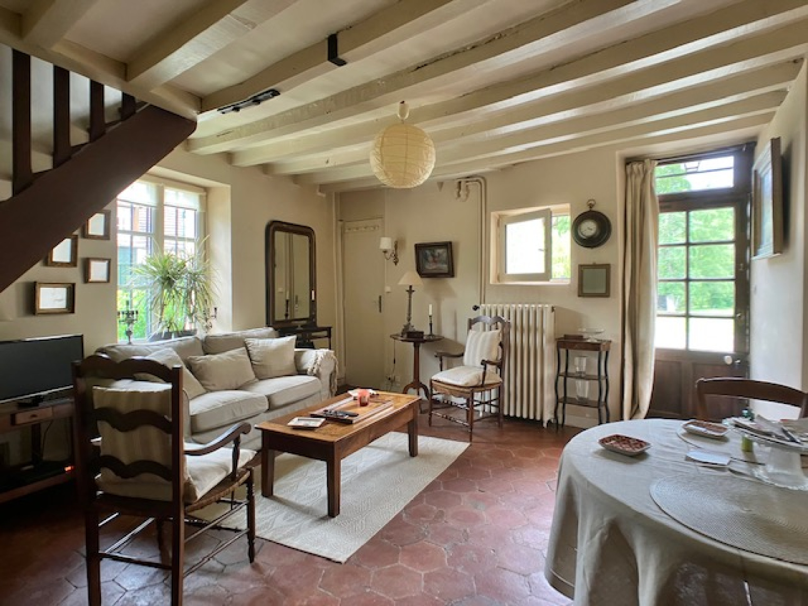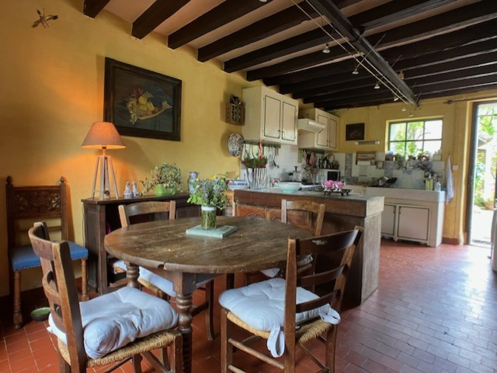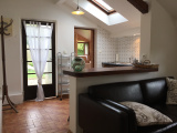La maison secondaire, attenante à la principale, s'ouvre depuis la cour pavée sur un séjour et une cuisine ouverte. L'étage accueille deux jolies chambres.