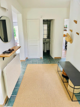 Agrèable maison famililale entièrement rénovée par ses propriétaires actuels. Au rez-de-chaussée, vous trouverez une belle entrée avec dressing et toilettes, une pièce de vie d'environ 70 m² avec une cheminée centrale et un accès direct à une terrasse plein Sud, une cuisine moderne ouverte et un cellier attenant. A l'étage, un couloir dessert trois grandes chambres avec placards, une salle de douche ainsi qu'une belle suite parentale très lumineuse du fait de sa baie vitrée avec vue sur le jardin. Ses atouts : une rénovation avec des matériaux de qualité, de beaux volumes et une grande luminosité dans toute la maison. Le tout sur un joli terrain arboré de 636 m². Grand garage avec porte motorisée. Au calme et dans un bel environnement proche du centre et des écoles. A voir sans tarder!