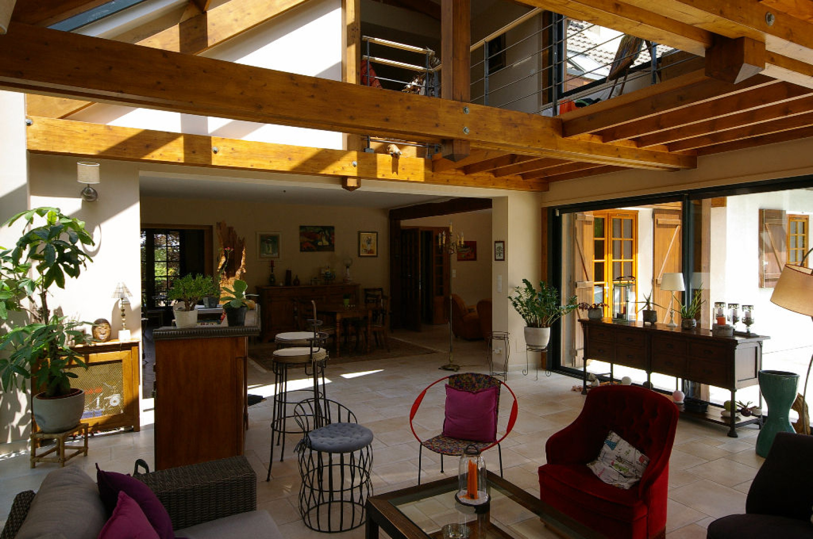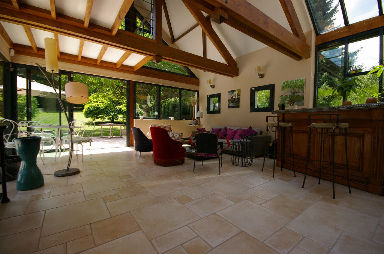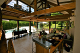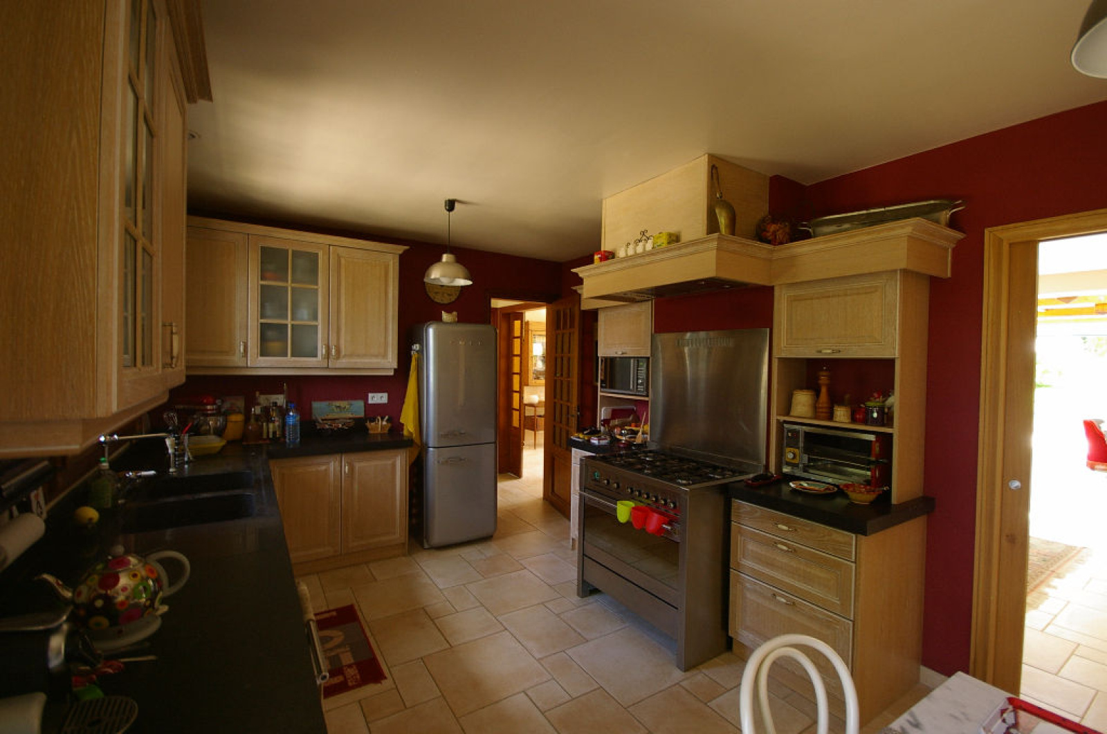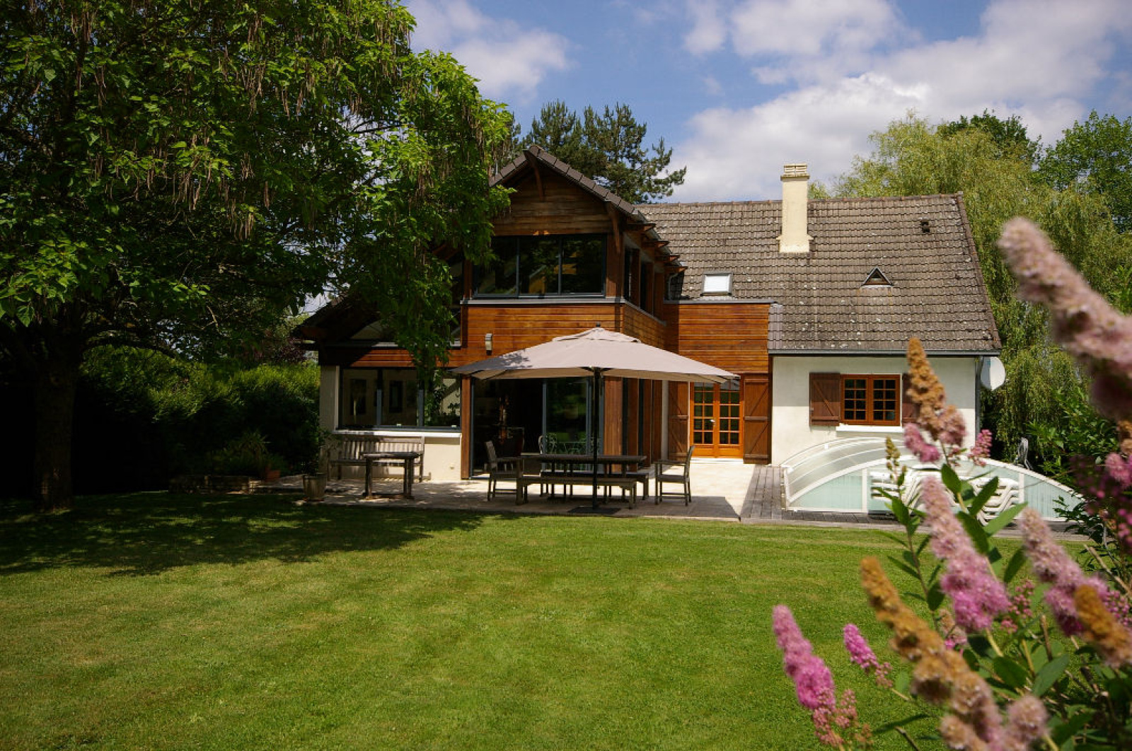 Bien exceptionnel avec un jardin de 3500 m² arboré et paysagé, sans vis à vis avec piscine chauffée ! Cette maison de 225 m² a bénéficié d'une magnifique extension contemporaine permettant d'avoir une pièce de vie de 84 m² avec cheminée, donnant sur une cuisine indépendante aménagée spacieuse, deux chambres une salle de douche et un toilette, nombreux rangements. A l'étage, une chambre de 38 m² une salle de bains avec balnéothérapie, deux autres chambres et une mezzanine bureau avec une vue imprenable sur le jardin, un toilette. Sous-sol total. Dépendance de 80 m² permettant d'abriter véhicules ou camping car.