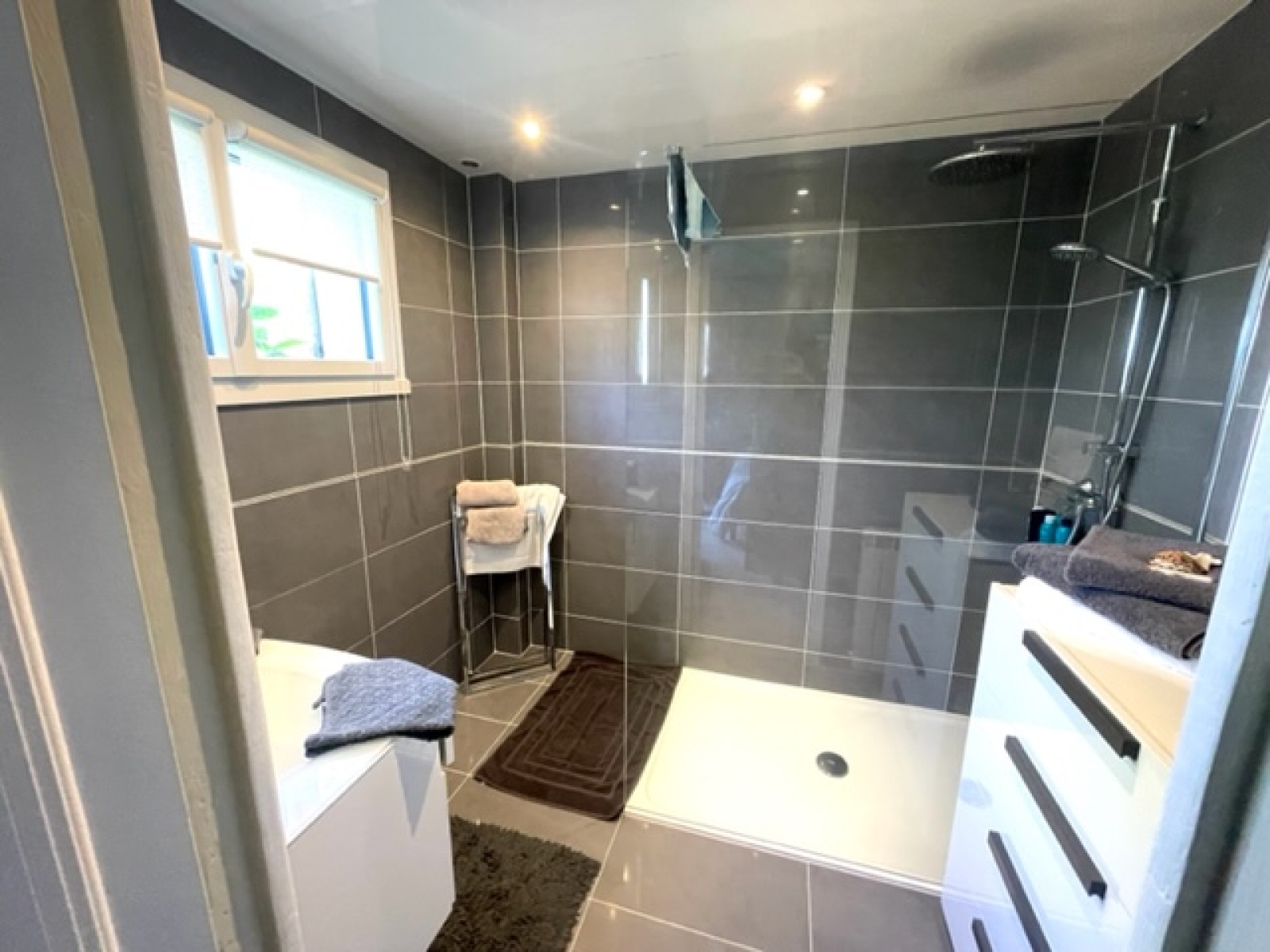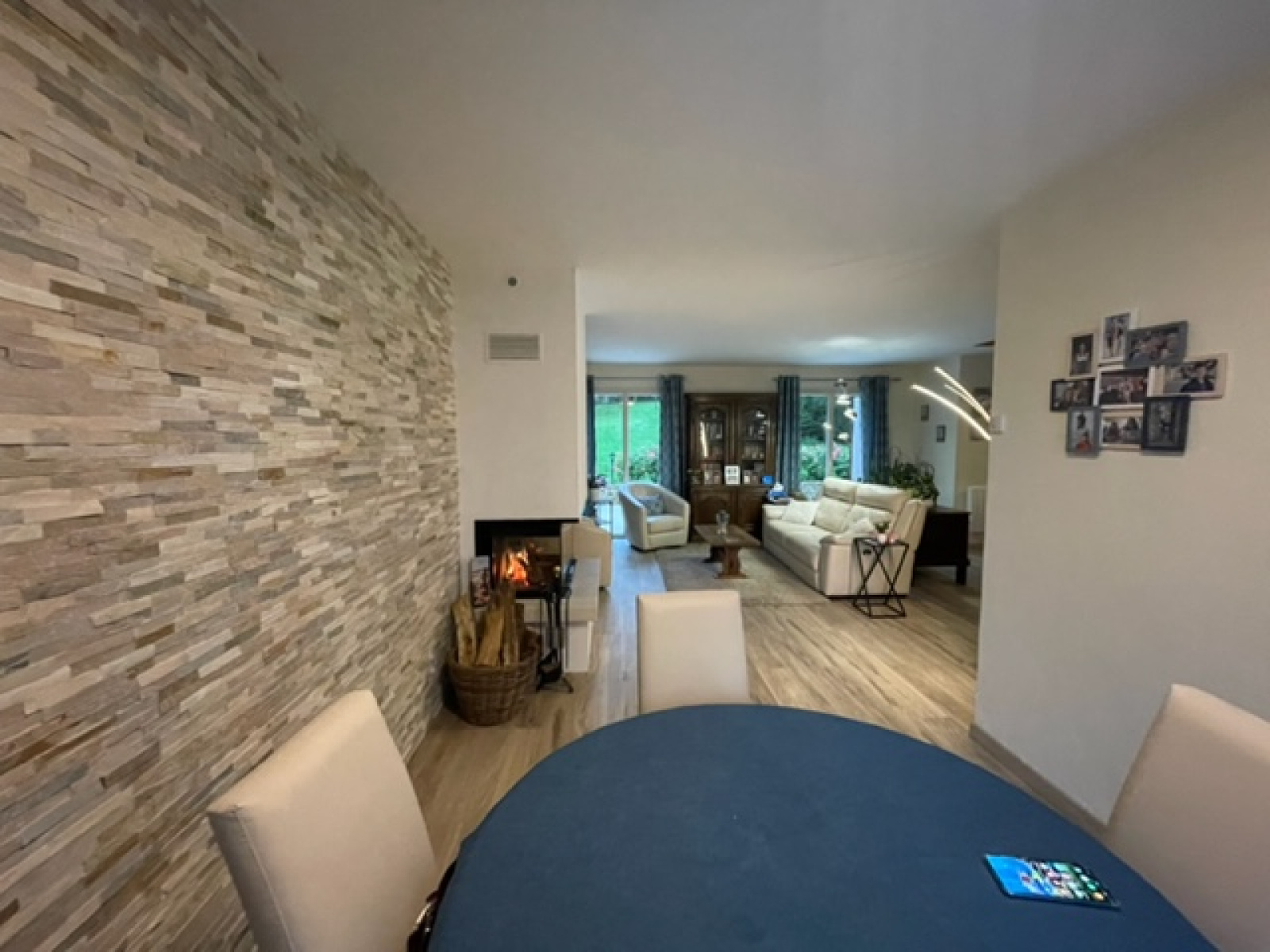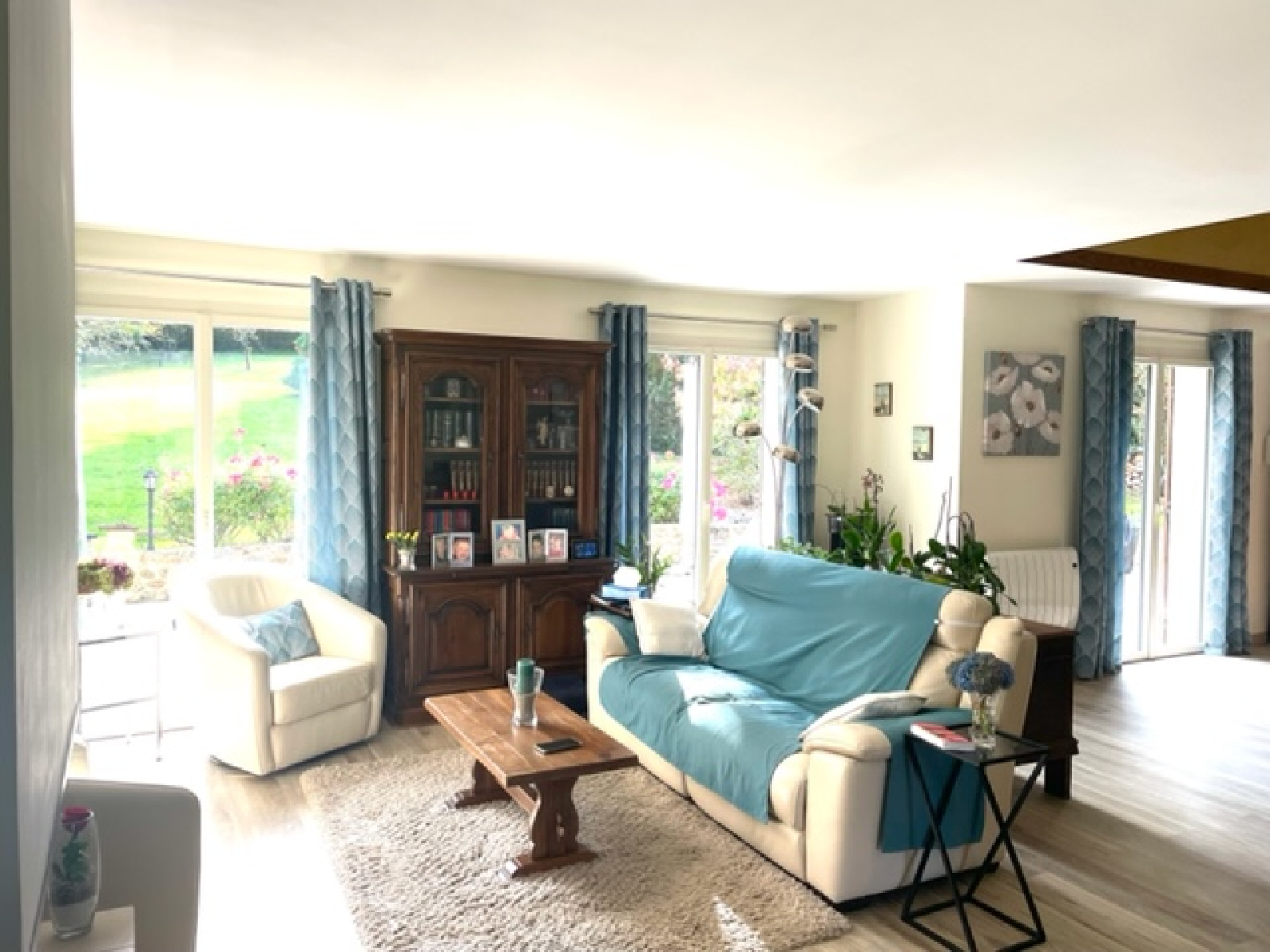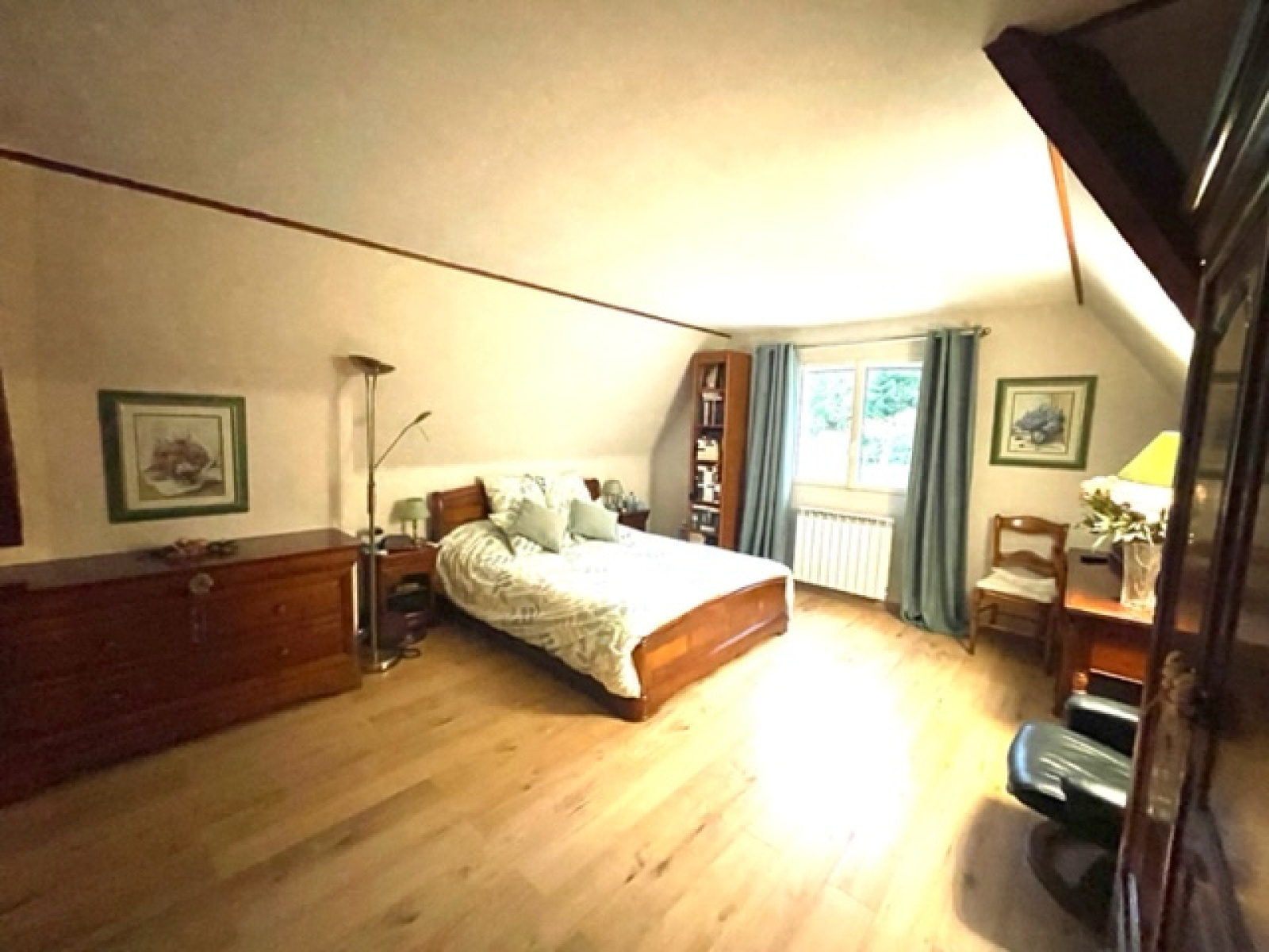 A l'abri des regards, cette belle maison rénovée avec goût est dans un état impeccable. Edifiée sur un sous-sol total et sur terrain arboré, elle propose de plain-pied une belle entrée, une pièce de vie lumineuse avec cheminée insert donnant sur une belle terrasse au Sud, un espace repas avec un accès direct sur une deuxième terrasse, une cuisine ouverte équipée et contemporaine, une chambre avec placards et salle de douche à l'italienne, un bureau, toilettes. A l'étage, deux chambres, une salle de douche, toilettes et une suite parentale avec dressing et salle de bains. Accès par l'intérieur de la maison au sous-sol comprenant une buanderie, une cave à vins, un atelier et un garage permettant de garer deux véhicules. Attenante à la maison, une charretterie fermée pouvant abriter une caravane ou autre véhicule volumineux. Magnifique jardin piscinable.
